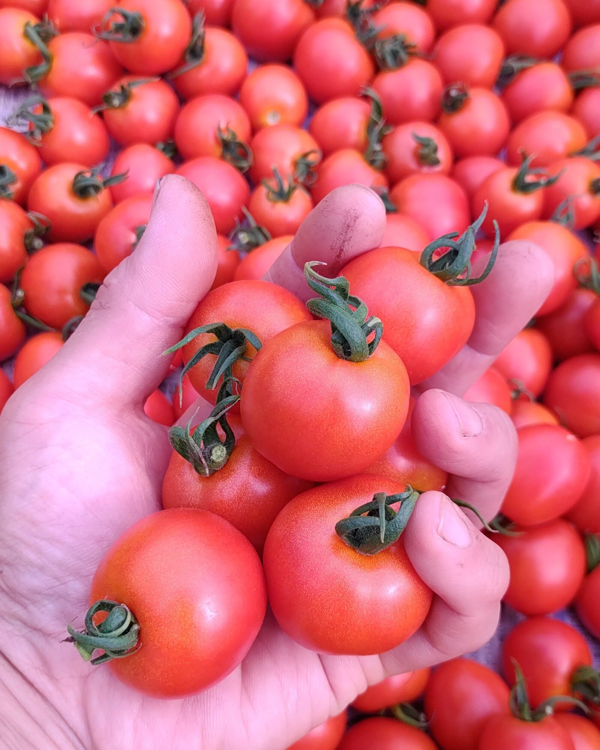 樹で赤く熟すまで待ってから収穫を行う赤熟もぎトマト